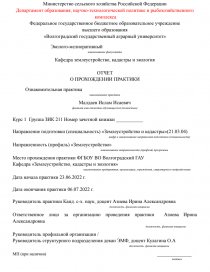 В соответствии с учебным планом я, Малдаев Ислам Исаевич, проходил ознакомительную практику на кафедре «Землеустройство, кадастры и экология» ВолГАУ, на протяжении 2 недель с 23.06.2022г.по 06.07.2022года. Руководителем практики выступил доцент кафедры «Землеустройство, кадастры и экология» ВолГАУ, к.с.- х.наук Азиева Ирина Александровна.