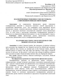 Key words: financial markets, financial technologies, ecosystems, financial services, platform solutions.