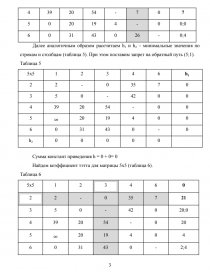 Далее вычтем минимальные значения по строкам из каждый строки и найдем минимальные значения по столбцам (таблица 3).