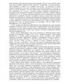 Приведемо деякі дані, що характеризують земельнi територiї, якi використовуються у першу чергу для сільського господарства. З загальної площі поверхні Землі в 510 млн.кв.км на долю суші приходиться 149 млн.кв.км (29,2%), інше складають океани і моря. Загальна площа земельних ресурсів світу дорiвнює 129 млн. кв. км, чи 86,5% площі суші (інше складають крижані пустелі Арктики й Антарктики). Сільськогосподарські угіддя займають 51 млн.кв. км, а покриті лісом площі - 38 млн.кв.км. У складі сільськогосподарських угідь рілля і багаторічні насадження складають 13,4 млн.кв. км (26,3%), косовиці і пасовища - 37,4 млн. Таким чином, у середньому на душу населення у світі приходиться 0,3 га ріллі - основного джерела одержання продовольства. В післявоєнні роки відзначалася тенденція до збільшення площі ріллі в окремих країнах, незважаючи на те, що частина сільськогосподарських земель відчужувалася для потреб промисловості, транспорту, міського господарства. Однак за останні роки площі ріллі скорочуються абсолютно, не говорячи вже про відносне скорочення (на душу населення), у зв'язку з зростанням населення, особливо в країнах, що розвиваються. В окремих країнах є великi розбiжностi у площi ріллі на душу населення. Так, у США на душу населення припадає 0,67 га ріллі, в Австралії близько 2 га, на Україні - 0,63 га, у ФРН - 0,12, у Великобританії - 0,11, у Японії - 0,03 га.