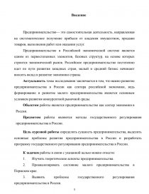 Цель курсовой работы определить сущность предпринимательства, выделить основные проблемы развития предпринимательства в России и разработать программу государственного регулирования предпринимательства в России.