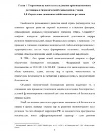 На тему: «Производственный потенциал регионов и экономическая безопасность Российской Федерации»