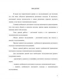 Целью данной работы выступает анализ особенностей применения системного подхода в экономическом исследовании.