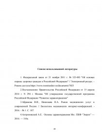 При написании работы были использованы труды отечественных авторов, а также периодические издания и литература по вопросам здравоохранения. Особо хотелось бы выделить таких авторов, как Снегирева Ю.Ю., Ломакина Н.А., Зудин А.Б. и т.д.
