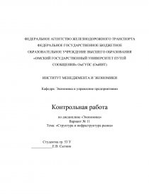 Целью данной работы является рассмотрение сущности и типологии рыночной структуры и инфраструктуры