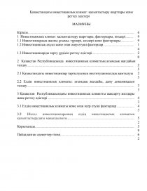 Қазақстан Республикасында инвестициялық климаттың ағымдық жағдайын талдау