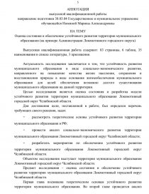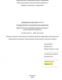 На тему: Оценка состояния и обеспечение устойчивого развития территории муниципального образования (на примере Администрации Локомотивного городского округа)