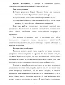 Предмет исследования - факторы и особенности развития экономического развития Германии в 20-30-е годы ХХ века.