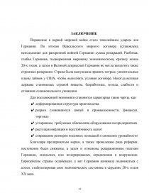 - Анализ результатов Первой Мировой Войны для экономики Германии по итогам Версальского мирного договора;