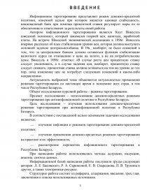 Цель работы: изучение использования денежно-кредитных режимов таргетирования при антиинфляционной политике в Республике Беларусь.
