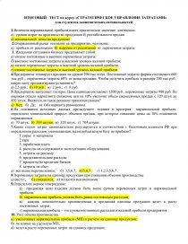 ИТОГОВЫЙ ТЕСТ по курсу «СТРАТЕГИЧЕСКОЕ УПРАВЛЕНИЕ ЗАТРАТАМИ»
