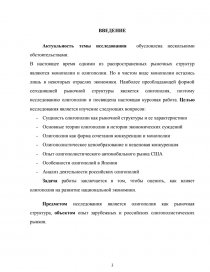 Предметом исследования является олигополия как рыночная структура, объектом опыт зарубежных и российских олигополистических рынков.