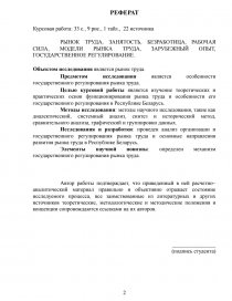 The purpose of the course work is to study the theoretical and practical foundations of the labor market and especially its state regulation in the Republic of Belarus.